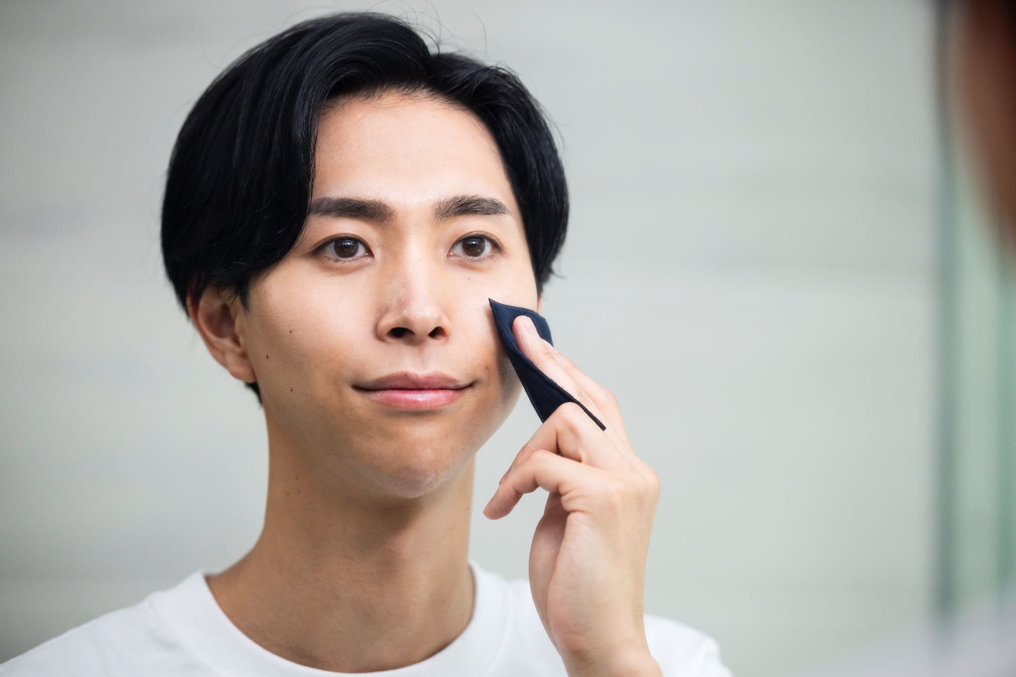 頬から額、鼻筋、口元、そして顎下まで、化粧水や乳液をしっかり浸透させてスキンケアの効果を高めます。